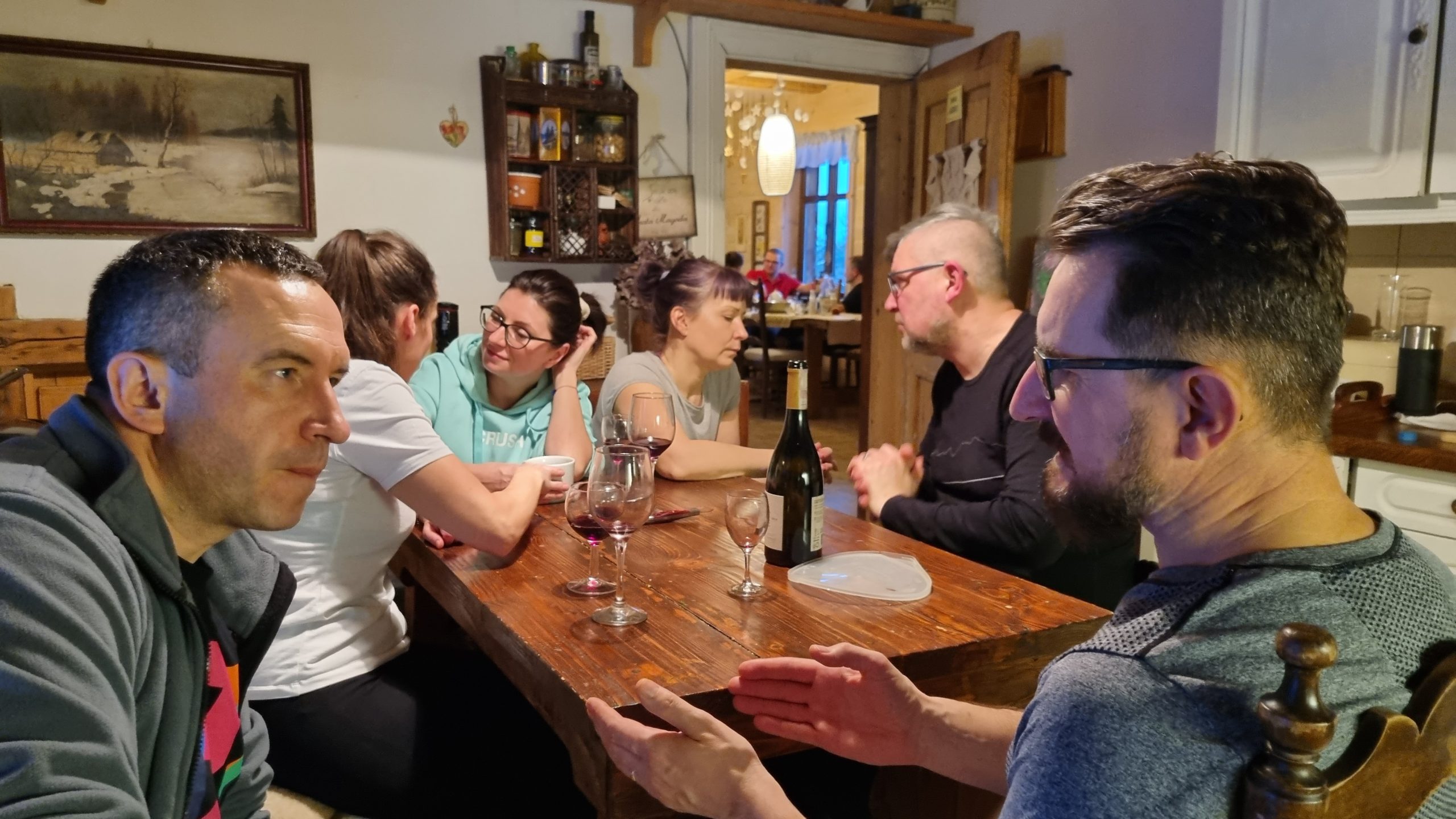 Co się działo? Śnieg sypiący w twarz zadziałał lepiej niż maseczka. Obejrzeliśmy dwa filmy, których akcja dzieje się w Bieszczadach, w jedynym autorskim kinie bieszczadzkim. Oglądaliśmy gwiazdy. Weszliśmy na Bukowe Berdo przy pogodzie – żylecie. Usłyszeliśmy kilka dojmujących historii o kryzysach, dojrzewaniu do zmian. Dowiedzieliśmy się, jak uspakajające jest wędkowanie (połączone z intencją złowienia belony w 2022), czym jest kwantowe postrzeganie rzeczywistości. Razem gotowaliśmy, razem uczyliśmy się ćwiczenia oddechowego. I mamy za sobą dziesiątki rozmów, przy kominku, przy ognisku, przy kuchennym stole, przy grach, podczas wędrówek, patrzenia w gwiazdy.